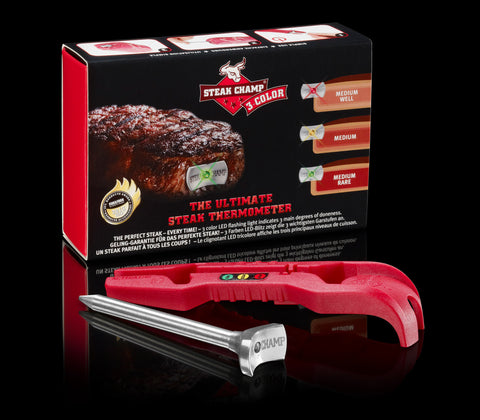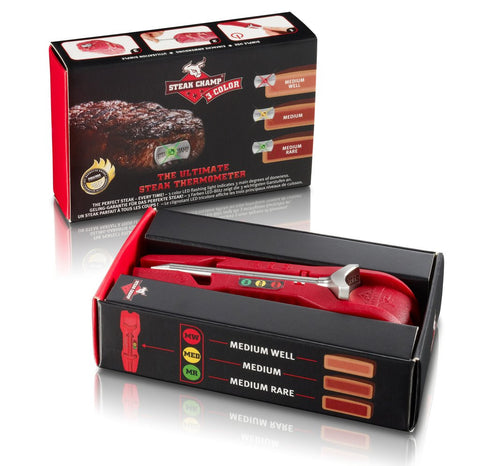 ستيك شامب هو أفضل مقياس حرارة لطهي الستيك و اللحوم و الذي يمكنك من الحصول على درجة السواء المطلوبة باعطاء اشارات ضوئية بألوان مختلفة (أخضر: سواء أقل من المتوسط medium rare، أصفر: سواء متوسط medium، أحمر: سواء أعلى من المتوسط medium well). يمكن استخدامه عند طهي اللحوم على الموقد، أو في الفرن، أو حتى على الشواية.