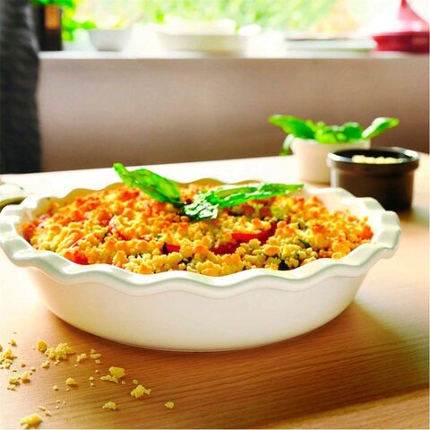 طبق بتصميم تقليدي جميل و مميز لتحضير و تقديم فطيرة التفاح و فطيرة الخوخ وكل وصفات الفطائر الحلوة و المالحة