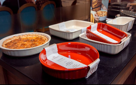 السيراميك مصنوع من صلصال برغندي المشكل في أفران فائقة الحرارة، و الذي يتميز بتوزيع الحرارة بشكل متوازن عند الخبز فيه و كذلك بحفظ الحرارة ولذا فهو رائع للتقديم أيضاً.