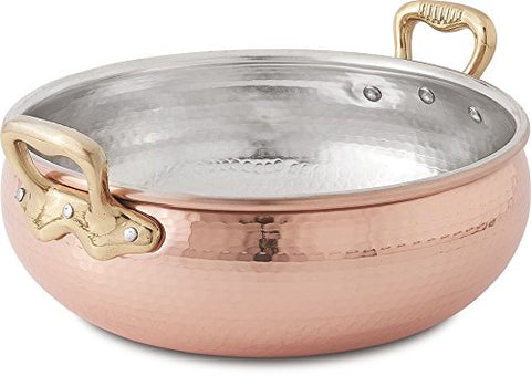هذا القدر من مجموعة لوكجوري المميزة بتصاميمها الرائعة و معدنها المطرّق مناسب لطبخ الايدامات و الأرز. مصنوع من النحاس الذي يعتبر أفضل موصل للحرارة على الاطلاق و الذي يقوم بتوزيع الحرارة بشكل متساوي للحصول على نتيجة مذهلة في الطبخ. مصنوع يدويا في إيطاليا من أفضل أنواع النحاس و بمقابض و مسامير من النحاس الأصفر المتين.