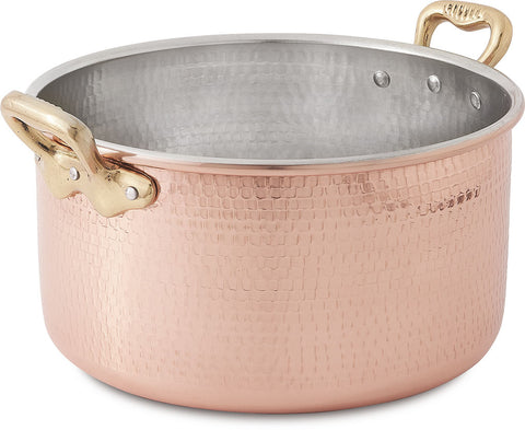قدر شوربة عالي من مجموعة لوكجوري المميزة بتصاميمها الرائعة و معدنها المطرّق. مصنوع من النحاس الذي يعتبر أفضل موصل للحرارة على الاطلاق و الذي يقوم بتوزيع الحرارة بشكل متساوي للحصول على نتيجة مذهلة في الطبخ. مصنوع يدويا في إيطاليا من أفضل أنواع النحاس و بمقابض و مسامير من النحاس الأصفر المتين