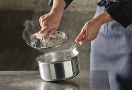French Collection version of the Affinity range, the Mont Bleu range is in multilayer material, a combination of stainless steel on the outside and aluminium on the inside for a hyper reactive result and even cooking.
