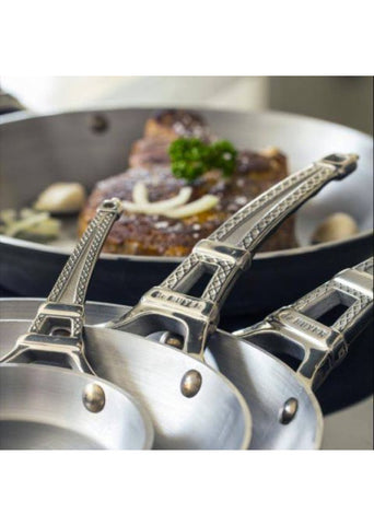 Riveted handle in cast stainless steel inspired by the famous Parisian tower.