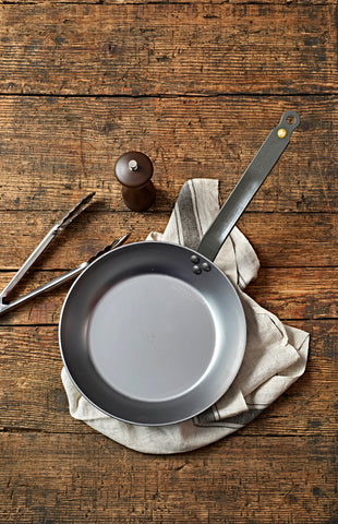Riveted handle curved in French-style for easy handling.