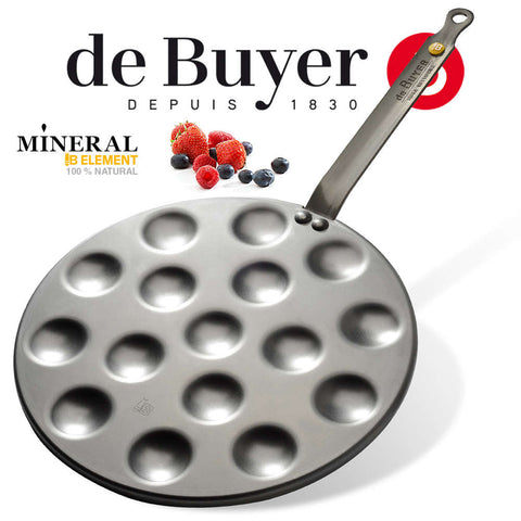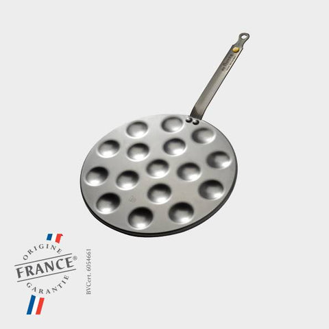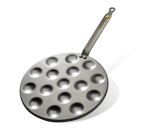 Perfect pan for cooking 16 poffertjes (mini-crepes, Dutch speciality). Ideal for making 4cm diameter mini-blinis.