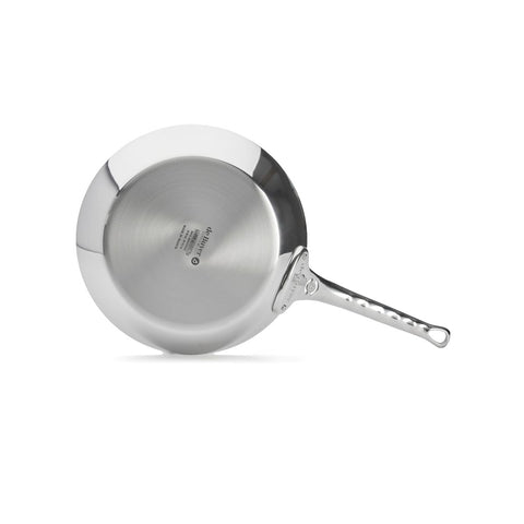 Round stainless steel pan with a Lyonnaise profile skirt that enables you to easily slide food onto a dish. Ideal for searing, grilling, browning, flambeing.
