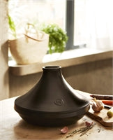 Our ‘Delight’ Tagine allows you to create delicious traditional recipes for tagines and other simmered dishes, on all types of heat sources (including induction) and in the oven. Made from the latest innovative ceramic, it is lighter than a classic tagine and offers the advantage of healthy cooking which respects the nutritional qualities of the ingredients used. Highly reactive for browning, on it can also be gentle and diffuse the heat evenly for gentle simmering, bringing out the delicate flavours of the ingredients. The result is tender, moist and full of flavour, thanks to the unique shape of the lid which allows the evaporated juices to circulate. The sleek lines of the white lid and the generous black base provide elegant service on the table and enhance all kinds of recipes, both exotic or more traditional. Its naturally non-stick glaze makes it easy to clean (dishwasher proof) and maintain. Handmade and checked in our Burgundy workshops the ‘Delight’ Tagine is guaranteed for 5 years.