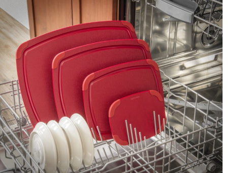 مصنوع أفضل خامات البلاستيك المعاد تدويره و بأركان من السليكون لمنع الإنزلاق و يتميز بحواف تحتجز السوائل أثناء الاستخدام لتحافظ على مطبخك نظيفاً. يمكن استخدامه على الوجهين و غسله في غسالة الصحون.