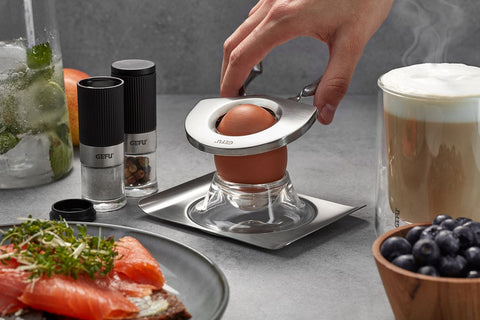 • tops cooked hens' eggs quickly and effortlessly• extra-sharp teeth for an even cut• suitable for all standard egg sizes• perfect for topping raw eggs for savoury or sweet fillings