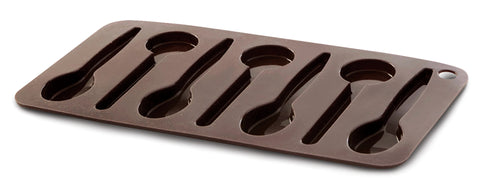 قالب من السيليكون المرن لتحضير ٧ قطع من الشوكولاتة اللذيذة على شكل ملاعق لتقديمها مع الشاي أو القهوة. يتميز السيليكون بتقليل الالتصاق أثناء التحضير، كما و تسهل مرونة القالب اخراج الشوكولاته منه دون ضرر.
