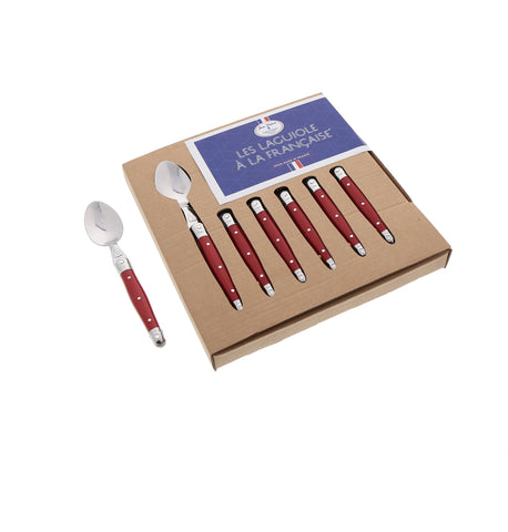 طقم ملاعق شاي أنيقة من مجموعة "Laguiole à la française" من جون دوبوست بتصميم مستوحى من الثقافة التقليدية الفرنسية لتضفي لمسة أناقة و جمال على طاولة الطعام و طاولة الشاي. الملاعق مغلفة بشكل رائع مما يجعلها أيضاً مناسبة كهدية لمن تحب، و بإمكانك أيضاً إكمال الطقم بشوك و ملاعق و سكاكين من نفس المجموعة و التي تباع منفصلة.