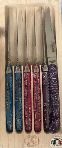 طقم سكاكين ستيك بألوان و تصاميم جذابة مكون من ٦ سكاكين مصنوعة من أفضل خامات الستانلس ستيل.