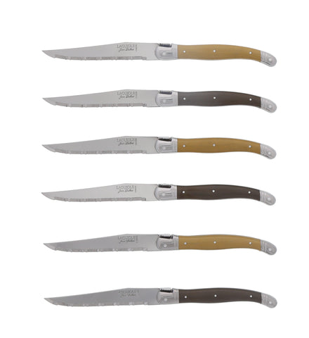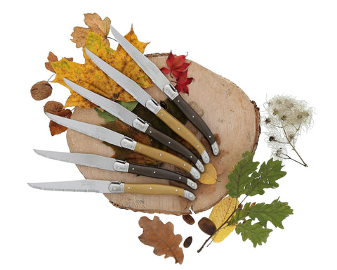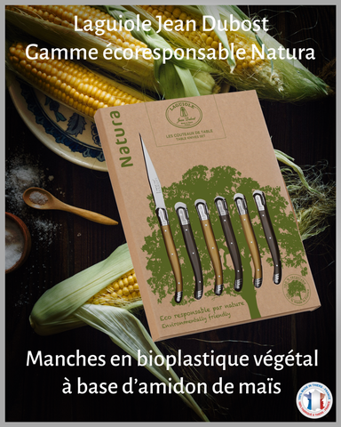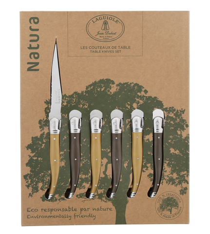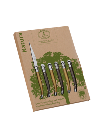 طقم سكاكين ستيك كلاسيكية من مجموعة "Natura" الصديقة للبيئة من جون دوبوست بتصميم مستوحى من الثقافة التقليدية الفرنسية لتضفي المزيد من التفرد و الجمال على طاولة الطعام. السكاكين مغلفة بشكل رائع مما يجعلها أيضاً مناسبة كهدية لمن تحب.