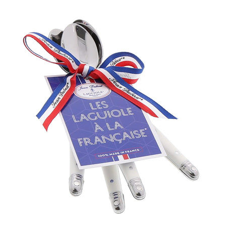 طقم ملاعق قهوة أنيقة من مجموعة "Laguiole à la française" من جون دوبوست بتصميم مستوحى من الثقافة التقليدية الفرنسية لتضفي لمسة أناقة و جمال على طاولة الطعام و طاولة القهوة. الملاعق مغلفة بشكل رائع مما يجعلها أيضاً مناسبة كهدية لمن تحب، و بإمكانك أيضاً إكمال الطقم بشوك و ملاعق و سكاكين من نفس المجموعة و التي تباع منفصلة.