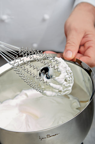 خافق بتصميم لولبي من الستانلس ستيل و بكرة من السيليكون، مصمم خصيصاً للخفق السريع و تحضير كريمة خفق غنية. مزود بمقبض مريح يوفر تحكم تام عند الاستخدام. من تصميم شيف الحلويات الإيطالي إيجينيو ماساري الشهير.