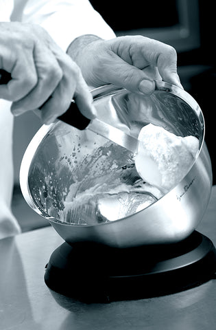 وعاء متعدد الاستخدامات من الستانلس ستيل مزود بقاعدة من المطاط. التصميم الفريد للقاعدة يسمح بإمالة الوعاء لتسهيل الخلط و التحريك بينما يمنع الأنزلاق و يوفر التحكم التام بالوعاء. من تصميم شيف الحلويات الإيطالي إيجينيو ماساري الشهير.