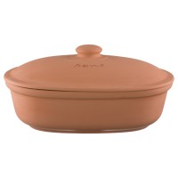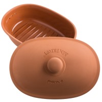 وعاء بيضاوي من الفخار مخصص لحفظ الخبز طازجا لعدة أيام. تساعد الفتحات الجانبية على تدوير الهواء لضمان تهوية جيدة و منع تراكم الرطوبة و نمو الفطريات. قاعدة الوعاء مطلية من الداخل لسهولة التنظيف، بينما الغطاء غير مطلي لموازنة مستوى الرطوبة و الحفاظ على الخبز طرياً و طازجاً.