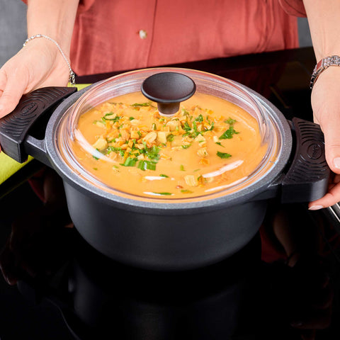 The pot impresses with its substantial weight and high-quality ProResist® non-stick coating, which ensures easy cleaning and allows the use of stainless steel kitchen utensils. It's perfect for steaming fresh vegetables or cooking delicious stews and sauces.