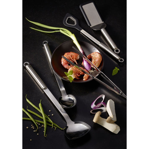 ملعقة تقليب مرنة مثالية لتقليب و حمل الفطائر و المخبوزات. مزودة بحواف من السيليكون ليمكن استخدامها بأمان على الأواني المطلية بالتيفلون دون خدشها. حواف السيليكون مقاومة للحرارة حتى ٢٦٠ درجة مئوية.