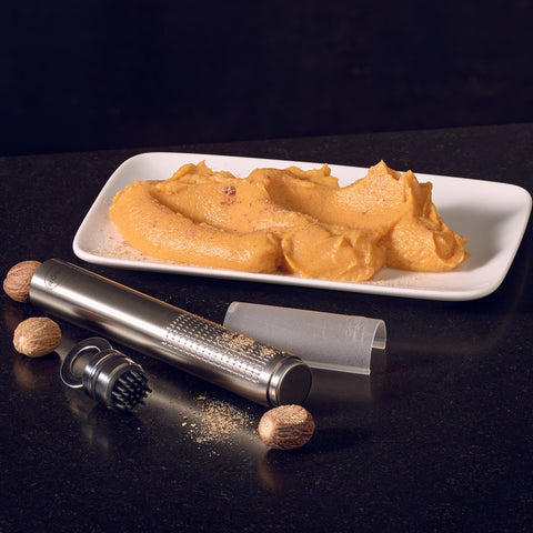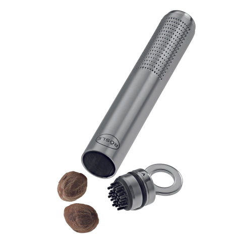 مبشرة مخصصة لجوزة الطيب ذات حجم صغير. مثالية للحصول على نكهة طازجة من جوزة الطيب أو الزنجبيل بفضل أسنان المبشرة الحادة و الدقيقة. يكمن أيضاً تخزين حبات جوزة الطيب داخلها، و يوجد تحت غطاء التخزين فرشاة صغيرة من السيليكون لتنظيف المبشرة. مزودة بغطاء لحماية أسنان المبشرة و لتخزينها و حملها بأمان.