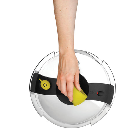 - مقبض إغلاق يمكن التحكم به بيد واحدة فقط لإغلاق و فتح القدر بسهولة.