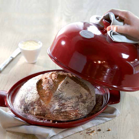 صينية السيراميك هذه مثالية لتحضير الخبز الفرنسي الشهي بفضل الغطاء المصمم على شكل قبة. يعمل الغطاء على حفظ بخار الماء بالداخل عند الخبز حيث يقوم البخار بجعل الخبز مقرمشاً من الخارج و طرياً من الداخل.