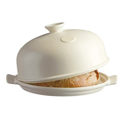 صينية السيراميك هذه مثالية لتحضير الخبز الفرنسي الشهي بفضل الغطاء المصمم على شكل قبة. يعمل الغطاء على حفظ بخار الماء بالداخل عند الخبز حيث يقوم البخار بجعل الخبز مقرمشاً من الخارج و طرياً من الداخل.