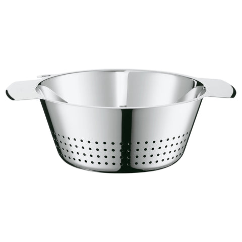 For straining vegetables and pasta, and for washing salads. The deep, evenly spaced side holes ensure rapid water drainage. The base has a three-point support.