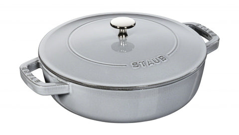 مصنوع من حديد الزهر الثقيل و المطلي بطبقة من السيراميك المقاوم للالتصاق و مزود بمقبض من النيكل