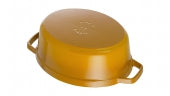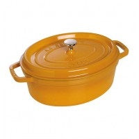 مصنوعة من حديد الزهر المطلي بطبقة من السيراميك المقاوم للالتصاق و مزودة بمقبض من النيكل