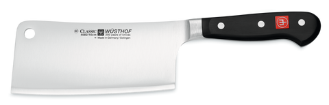 The ultimate tool for all tasks that place high demands on the sturdiness and power of the knife: the Cleaver makes the cutting of ribs, racks, bones and also extremely hard-skinned fruit - such as coconuts - easy. The large flat of the blade, together with its strength and rigidity, make for easier and fatigue-free prepping. Another knife for coarser tasks, which can also be used for cutting, is the Butchers Knife.