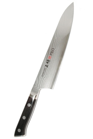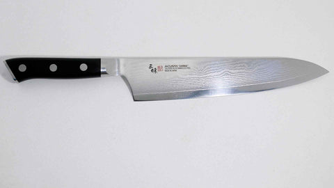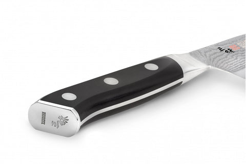 سكينة غيوتو من مجموعة كلاسيك داماسكاس من زانماي. تماثل سكينة الغيوتو اليابانية سكينة الشيف الأوروبية فهي متعددة الاستخدامات و مثالية للتقطيع و الفرم و تحضير اللحوم و الخضروات و لجميع إحتياجات الشيف.