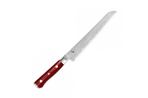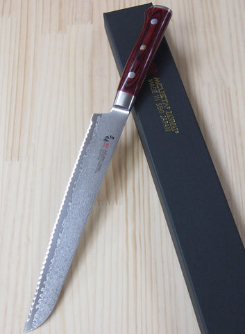 سكينة خاصة لتقطيع الخبز من مجموعة كلاسيك برو داماسكاس من زانماي. هذه السكينة ذات النصل الطويل و الشفرة المسننة الحادة مثالية لتقطيع الخبز و المخبوزات المقرمشة دون الحاجة للضغط عليها و بالتالي تجنب إتلاف المخبوزات.