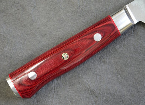 سكينة غيوتو من مجموعة كلاسيك برو داماسكاس من زانماي. تماثل سكينة الغيوتو اليابانية سكينة الشيف الأوروبية فهي متعددة الاستخدامات و مثالية للتقطيع و الفرم و تحضير اللحوم و الخضروات و لجميع إحتياجات الشيف.