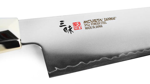 سكاكين مجموعة ريفولوشن من زانماي مصنوعة من بودرة الفولاذ SPG2 و المفضلة لدى الطهاة المحترفون لأنها صلبة و قوية. كل سكينة مصنوعة من ثلاث طبقات من هذا النوع الفولاذ مما يجعل شكلها مثل السيوف اليابانية التقليدية بشفرة ذات تباين عالي مقارنة بباقي النصل. تحافظ هذه السكاكين على حدة الشفرة لفترة طويلة جداً و للشفرة زاوية ٦١ درجة. مقابض السكاكين من هذه المجموعة مصنوعة من المايكارتا الخضراء، و هي خامة صناعية قوية جداً و مرنة و مضادة للسوائل. تصميم المقابض بعشر أوجه و بشكل يماثل قبضة اليد يوفر تحكم تام و استخدام مريح أثناء التقطيع، و هو أيضاً مزين أيضاً بمسمار من الموزايك المعدني و الذي يعتبر قمة الحرفية في صناعة السكاكين.