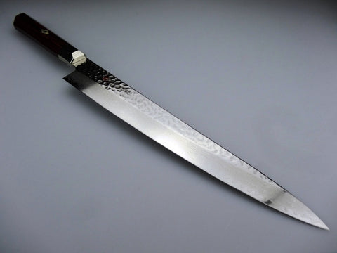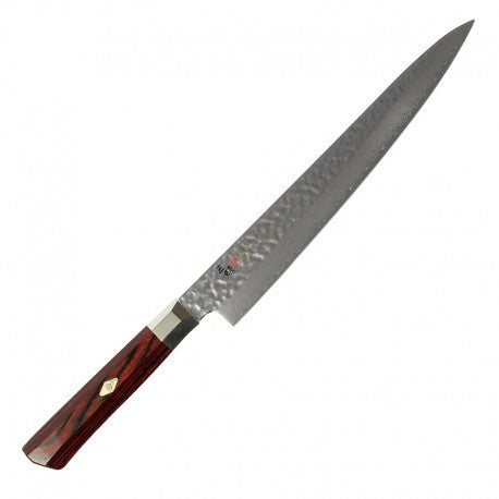 سكينة سوجيهيكي من مجموعة سوبريم هامرد من زانماي. سكاكين السوجيهيكي اليابانية مخصصة لتقطيع اللحوم لشرائح بدقة و سهولة بفضل نصلها الطويل و النحيف، و بفضل الشفرة ذات الزاوية المزدوجة، فهي تضمن تقطيع متقن بحركة واحدة.