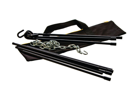The heavy-duty Lodge Adjustable Tripod adapts to fit any outdoor setting, and packs easily into the included tote bag.Variable leg segments adjust from 101-152 cm. All steel construction with high-temperature black finish, and with a 91 cm stainless steel chain with S-hook.