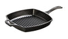 The Lodge Cast Iron Grill Pan allows grease to drain away from the food while creating tantalizing grill marks. This square grill pan is seasoned and ready to use and perfect for cooking bacon, steaks and more.