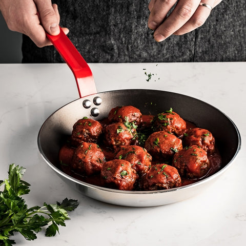 Riveted iron handle, coated with red epoxy resistant to the flash oven (10min ; 200°C).