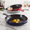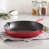 also makes it suitable for braising foods that require a little more room, such as medallions. This series’ frying pans are enamelled in matt Color : Black on their inner sides. This coating makes your food even more flavourful because the enamel enhances the food’s natural flavour. In addition, you can hang the pan directly in the kitchen, so it’s always within reach. That’s why there is a hole at the end of the cast iron handle, exactly for this purpose. You can fry up tasty dishes in an instant in the Color : Cherry red pan from the frying pans series.
