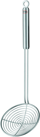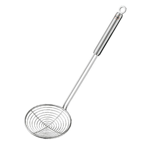 For lifting out fried food. The front part of this skimmer is from a wire loop. The wide distance between wires ensures quick and efficient draining away of fats.
