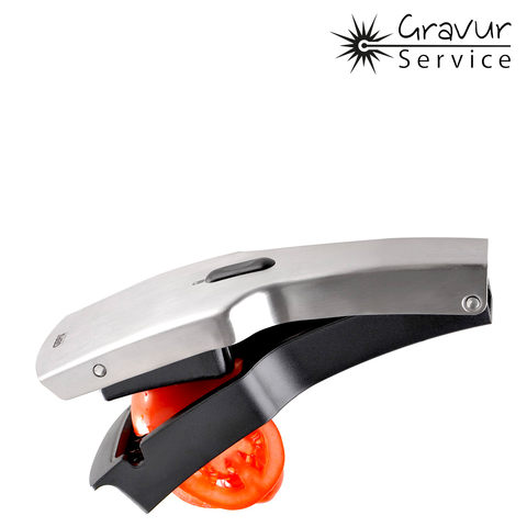 This slicer will make your work in the kitchen easier. Whether you are making fruit salad, tomato and mozzarella or a delicious mushroom dish, with the slicer you can cut exact 5-mm slices. The specialist serrated Japanese blade makes chopping ingredients into child's play. To clean, simply unfold the bars and, after use, place in the dishwasher. The safe locking mechanism saves space when it is put away in a drawer.