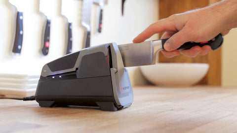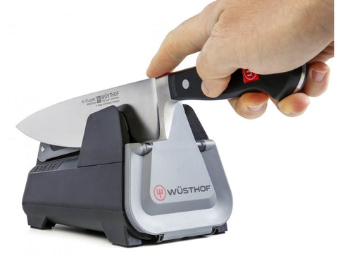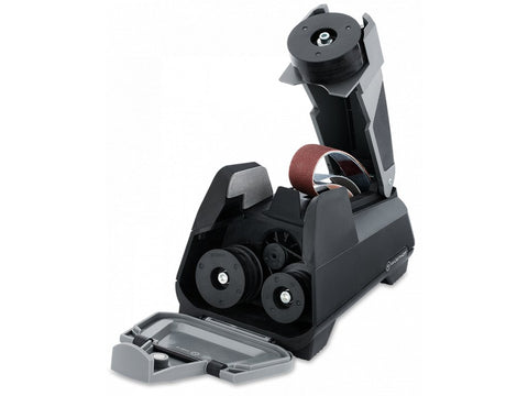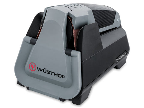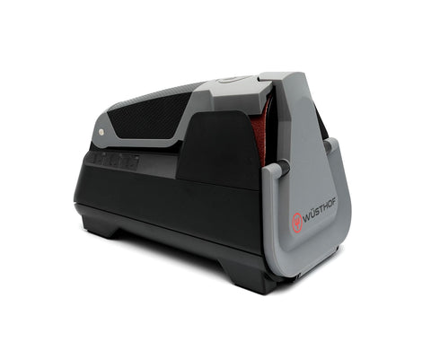 The WÜSTHOF EASY EDGE electric grinder delivers professional results thanks to flexible grinding belt technology in an easy-to-use home grinding system. The simple "One Touch" control of the user will guide each of the sharpening cycles without fumbling. Integrated guiding feet always ensure sharp and precise work. Cleaning is easy thanks to an automatic magnetic extraction system that collects dust during sharpening.