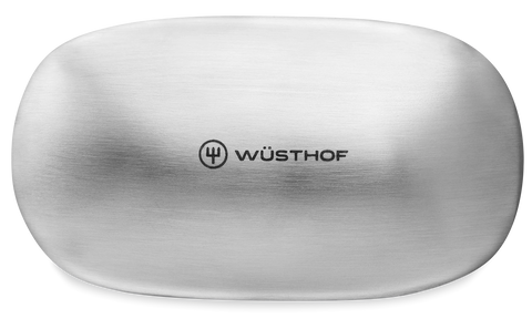 If you work with garlic, onions, fish or other pungent foods, the WÜSTHOF Stainless Steel Soap is a must-have in your kitchen! Unlike regular soap, this stainless steel soap neutralizes and removes lingering smells from your hands. The stainless steel acts as a catalyst, which converts the odor molecules into neutral oxygen compounds removing any lingering scent.