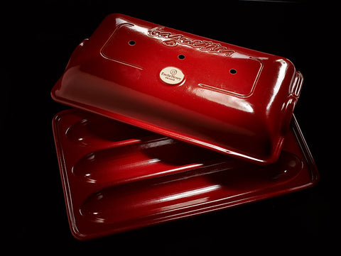 The ceramic is made from high-fired Burgundy clay which is great in conducting and retaining heat for perfectly baked bread.