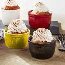 طقم عملي و متعدد الاستخدامات مكون من قالبين من السيراميك بألوان رائعة. مثالي لتحضير و تقديم السوفليه و الكريم بروليه، و المقبلات و العديد من الأطباق الحلوة و المالحة.