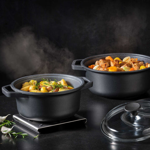 The pot impresses with its substantial weight and high-quality ProResist® non-stick coating, which ensures easy cleaning and allows the use of stainless steel kitchen utensils. It's perfect for steaming fresh vegetables or cooking delicious stews and sauces.