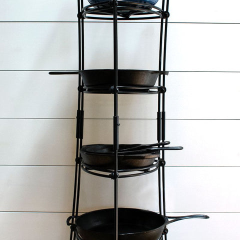 When you have a lot of cast iron cookware, you need a sturdy place to store it. This Cookware Storage Tower is a freestanding, 6-tier construction that can handle the weight of cast iron and supports Lodge’s largest dutch oven size. The fluted design has a small footprint that makes an efficient use of space as you proudly display your cookware collection for all to see. Assembly is required.