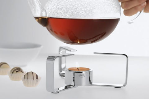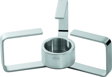 For standard tea candles (Ø 39 mm/1.5 in.). With foldable arms for practical, space-saving storage. Non-slip rubber feet guarantee a safe topple-free stand. High polish surfaces. Manufactured entirely from 18/10 stainless steel.