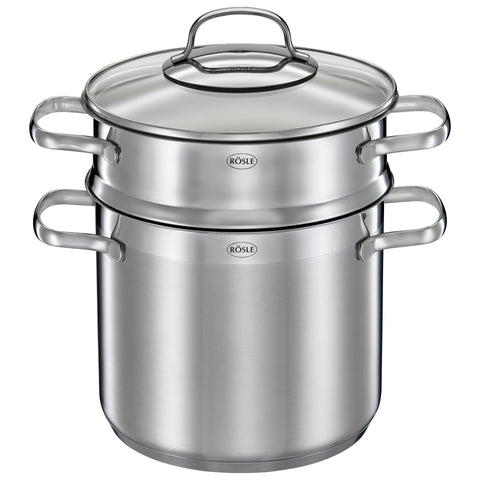 With the Rösle pasta pot with its extra-deep pasta insert, you can cook penne, fusilli, spaghetti, or even vegetables evenly al dente, bringing Italian flair right to your home. To prepare, simply place the pasta or vegetables directly into the removable stainless steel insert. The insert can also be used as a strainer. The deep side holes also ensure that liquid drains quickly. The pasta insert is simply inserted between the pot and the lid.